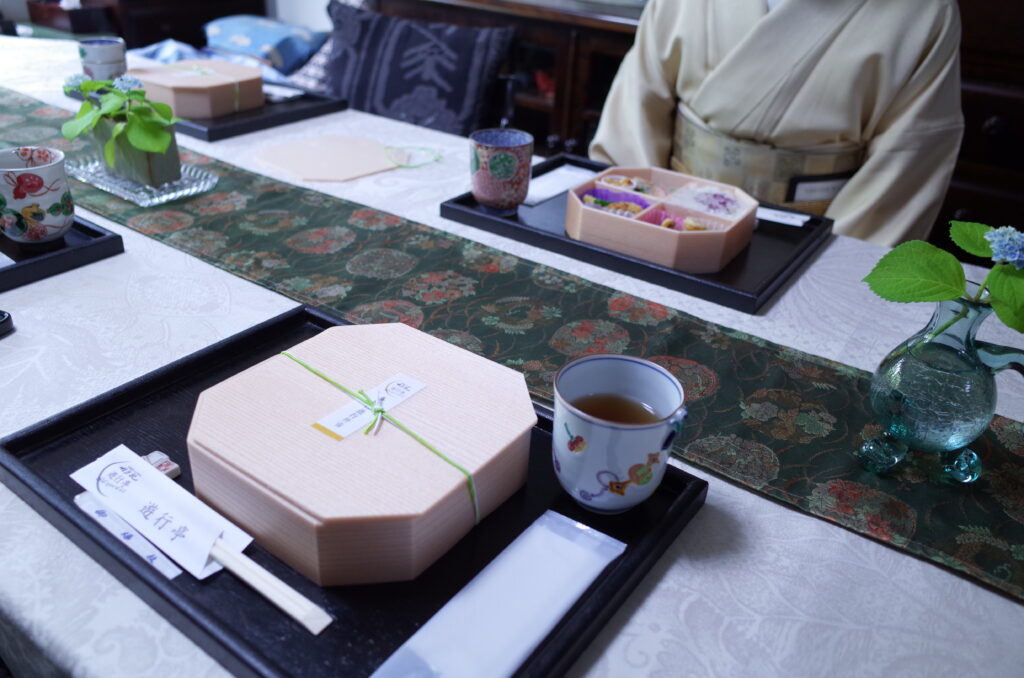 お食事は、一流料亭から取り寄せた彩り豊かな仕出し弁当。着物姿でいただくランチは、他では味わえない非日常のひととき。